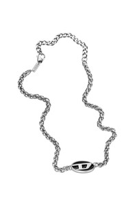 Product Description Diesel's chain necklace features black enamel and stainless steel and a lobster clasp closure. ID: DX147000DJW Materials & Details Composition: Steel Material: Stainless Steel Closure: Lobster Clasp Finish: Polished Measurements: L 400MM+100MM x W 27MM x H 14.58MM