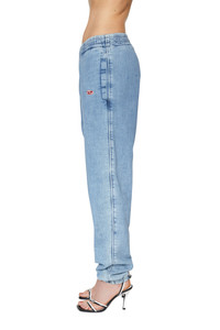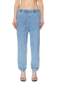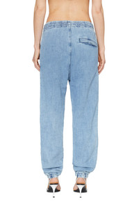 PRODUCT ID: A0527209D01 - 98%Cotton 2%Elastane-Spandex - Tapered - Slim - Regular waist - Medium treated - JoggJeans - Light blue Model is wearing a size S and is 175 cm / 5'7'' Fits true to size, take your normal size. Slim style featuring elasticated inserts at the waist and cuffs. This Track Denim is designed in a unisex silhouette. Featuring a light blue wash, treated to obtain an authentic vintage look.