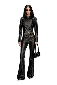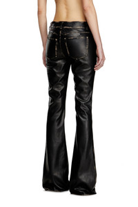 Product Description Women's five pocket pants cut from leather-like fabric, with a low waist and front fly opening. The bootcut leg is enhanced by local bleaching effects around the seams, creating a distressed finish. A Diesel Denim Industry logo peeps out of the right pocket. ID: A167010IKAR Size & Fit Model is wearing an IT size 40 and is 175 cm / 5'7'' Check the size chart to choose the correct size. Materials & Details Composition: 100%Polyester, Coating 100%Polyurethane Regular fit
