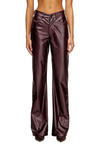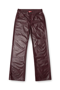 Product Description Women's five-pocket pants crafted from burgundy coated fabric, offering a unique, smooth texture that feels a bit like leather. The straight-leg silhouette is enriched with the iconic Diesel Industry logo flag, belt loops, and a metal zipper and button closure. ID: P016980SPFE Size & Fit Model is wearing an IT size 38 and is 177 cm / 5'9" Materials & Details Composition: 100%Polyester, Coating 100%Polyurethane Five-pocket style Belt loops Metal zipper closure Straight leg