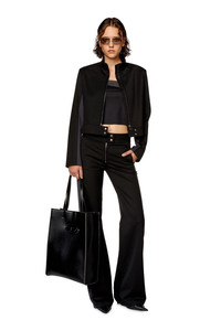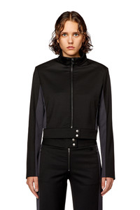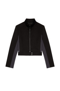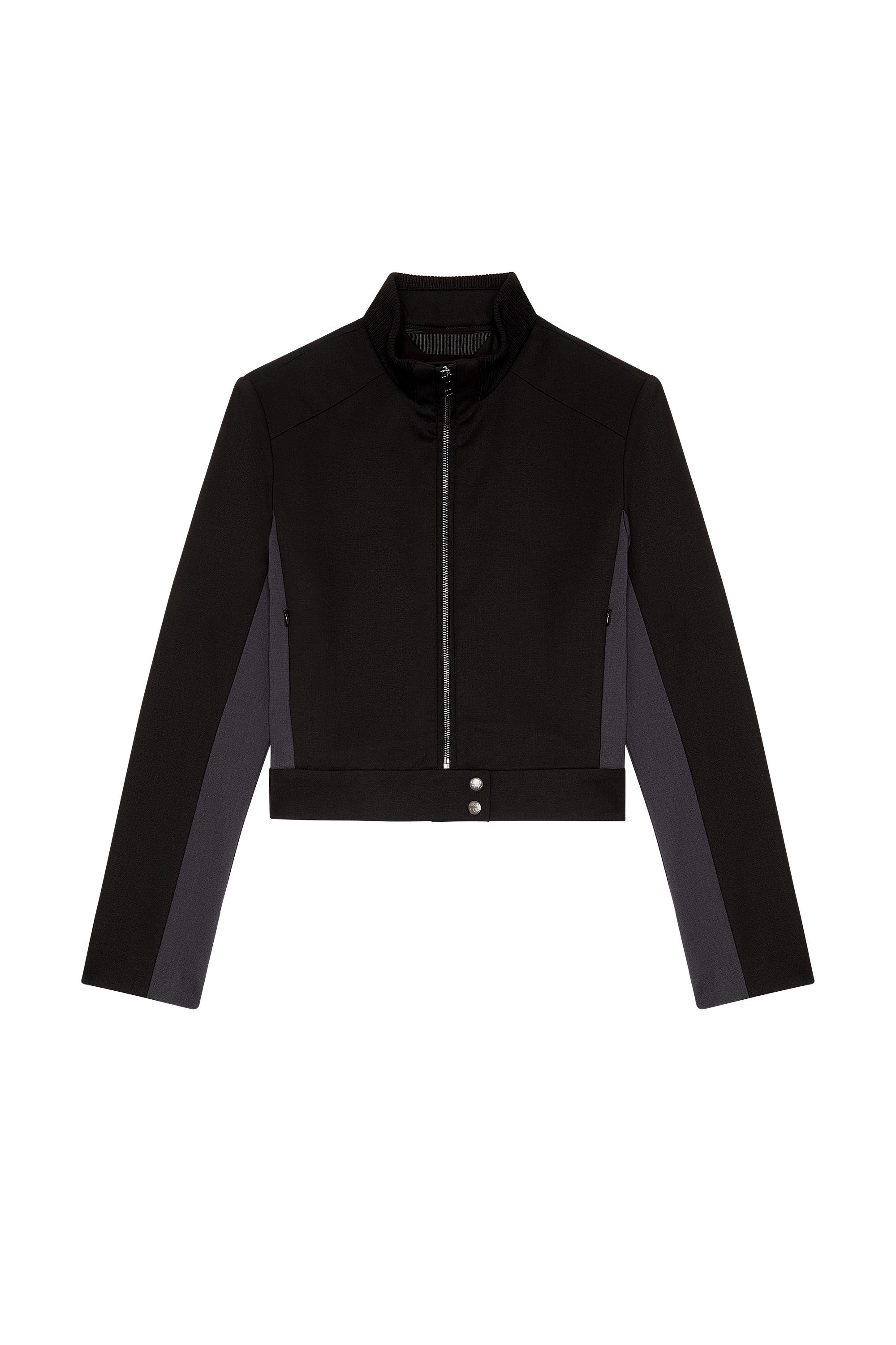 Model is wearing an IT size 40 and is 175 cm / 5'7'' Fits true to size, take your normal size. Women's jacket inspired by formal tailoring. Crafted from stretch cool wool twill, spliced with contrast panels and enriched with biker zip details. Finished with a metal oval D plaque at the back of the collar.