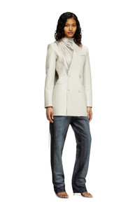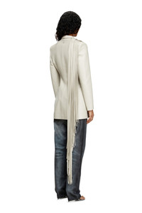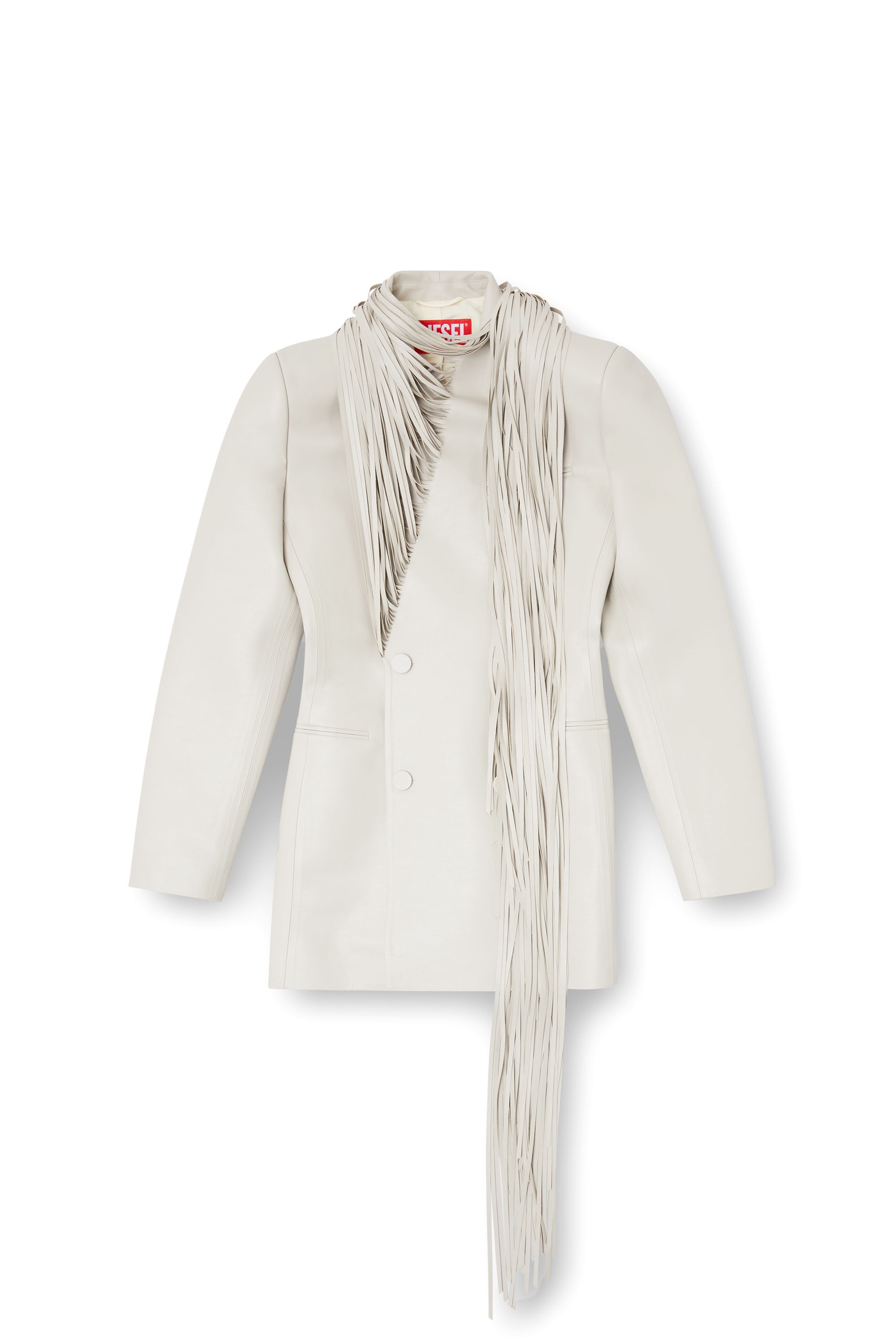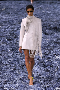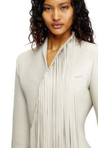 Product Description Sartorial mastery meets a wow factor in this women's bonded coat showcased on the SS25 runway. Sleek, supple and ultra-lightweight, it has a short, double-breasted profile tailored with exquisitely clean lines. The extra-long fringing – measuring a whopping 2 metres and cut during a meticulous process that takes 7-8 hours to complete – is an artful continuation of the garment and can be styled like an enormous shredded scarf, adding dynamic texture. ID: A181870TKBK Size & Fit Model is wearing an IT size 40 and is 175 cm / 5'7'' Check the size chart to choose the correct size. Materials & Details Composition: 50%Polyurethane 50%Polyester Spring Summer 2025 Runway Show Double-breasted with tonal buttons Asymmetrical shredded scarf-like fringing 3 jetted pockets Lined