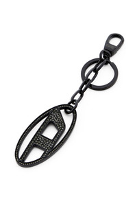 Product Description Cast from silver-tone metal, this women's keyring features the Oval D plaque suspended from a short chain – one side is polished, the other bedecked with crystals in varying sizes. ID: X09691P5607 Materials & Details Composition: 90%Zinc 10%Iron Clasp closure Split ring