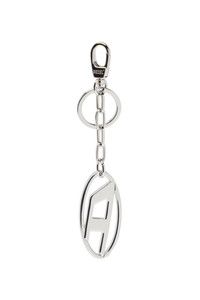 Product Description Cast from silver-tone metal, this women's keyring features the Oval D plaque suspended from a short chain – one side is polished, the other bedecked with crystals in varying sizes. ID: X09691P5607 Materials & Details Composition: 90%Zinc 10%Iron Clasp closure Split ring