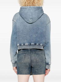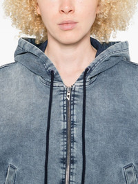 hooded zip-up denim jacket Highlights - Blue - Hooded neckline - Zip fastening - Long sleeves - Ribbed cuffs - Welt pockets Imported Composition Cotton 97%, Elastane 3% SIZE & FIT Model measurements Height 5 ft 9 in(1.75 m) Bust/Chest 34.64 in(88 cm) Hips 36.61 in(93 cm) Waist 26.37 in(67 cm) Washing instructions Machine Wash