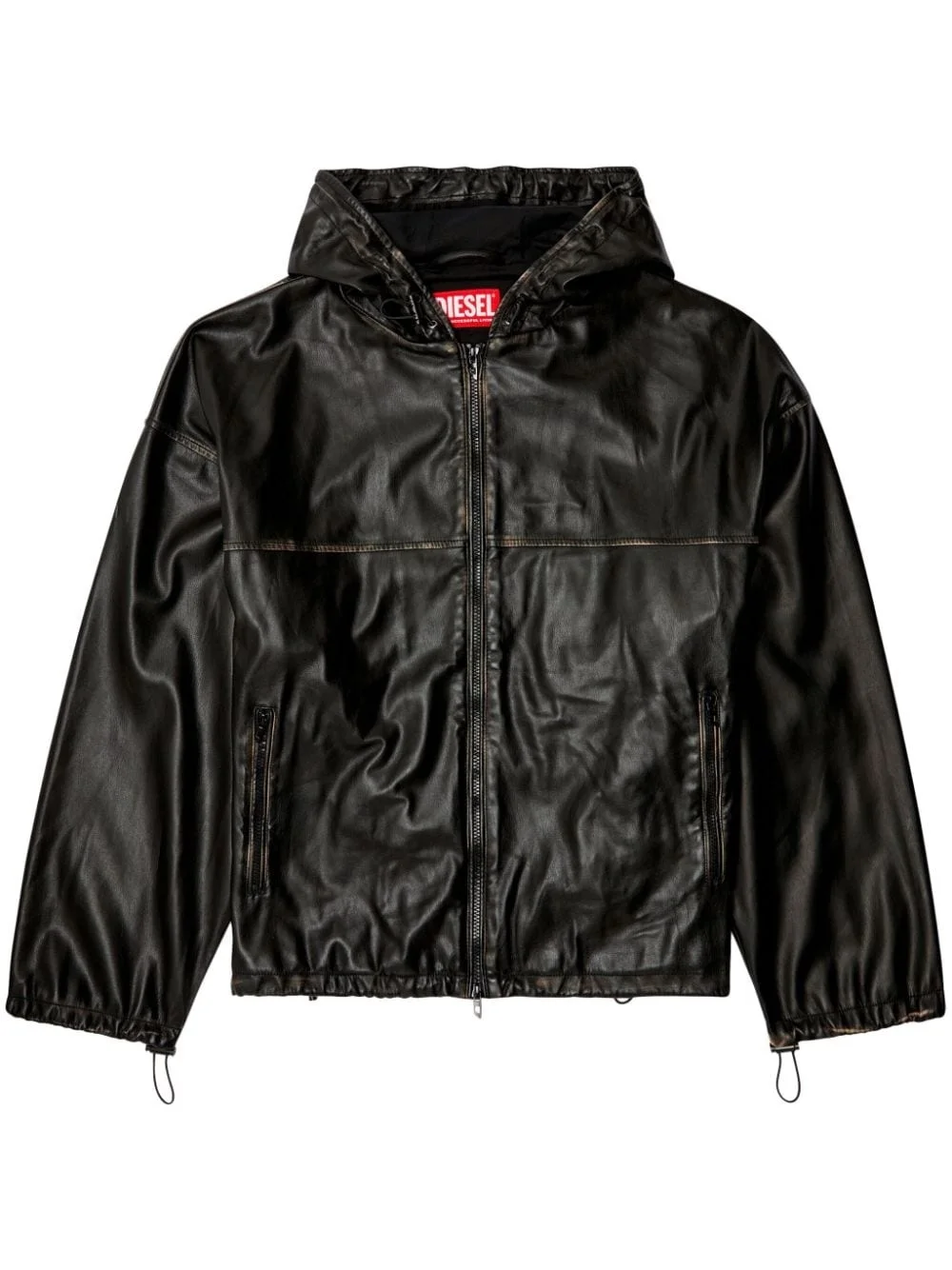 J-Antil bomber jacket Highlights - Black - Faux leather - Two-way zip fastening - Drawstring hood - Long sleeves - Two side welt pockets - Drawstring cuffs - Drawstring hem - When buying this unisex item, keep in mind that it is graded in standard men's sizing. Imported Composition Polyester 100%, Polyurethane 100%