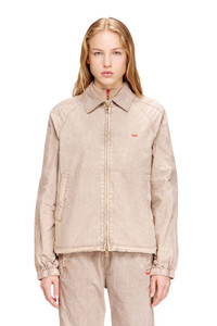 Product Description Lightweight jacket in recycled-nylon Taslan. Garment-dyed and treated for a weathered fade, this unisex style has elasticated cuffs, drawstring hem and a simple shirt-style collar. The tonal five-stripe bands down the sleeves lend an athletic edge. Finished with a silicone red D logo on the chest. ID: A212320PLBH Materials & Details Composition: 100%Polyamide-Nylon Two-way zip closure Shirt-style collar and zip pockets Elasticated cuffs and drawstring hem Lined at front Unisex