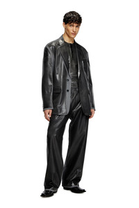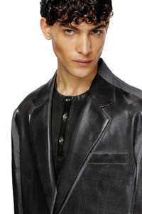 Product Description Diesel joins forces with Maneskin's charismatic frontman Damiano David to create an exclusive capsule of non-conformist pieces. Part of the collection, this men's oversized blazer shows a playful subversion of tailoring. It's cut from Cool Wool and screen-coated solely over the front, rendering it dark and shiny – the imperfect finish is fully intentional. ID: A177530SPAM Size & Fit Model is wearing an IT size 48 and is 188 cm / 6'2" Check the size chart to choose the correct size. Materials & Details Composition: 54%Polyester 44%Virgin Wool 2%Elastane-Spandex, Coating 100%Polyurethane Diesel x Damiano David capsule collection Oversized fit Chest pocket, front flap pockets, buttoned cuffs and back vent Two-button closure Lined