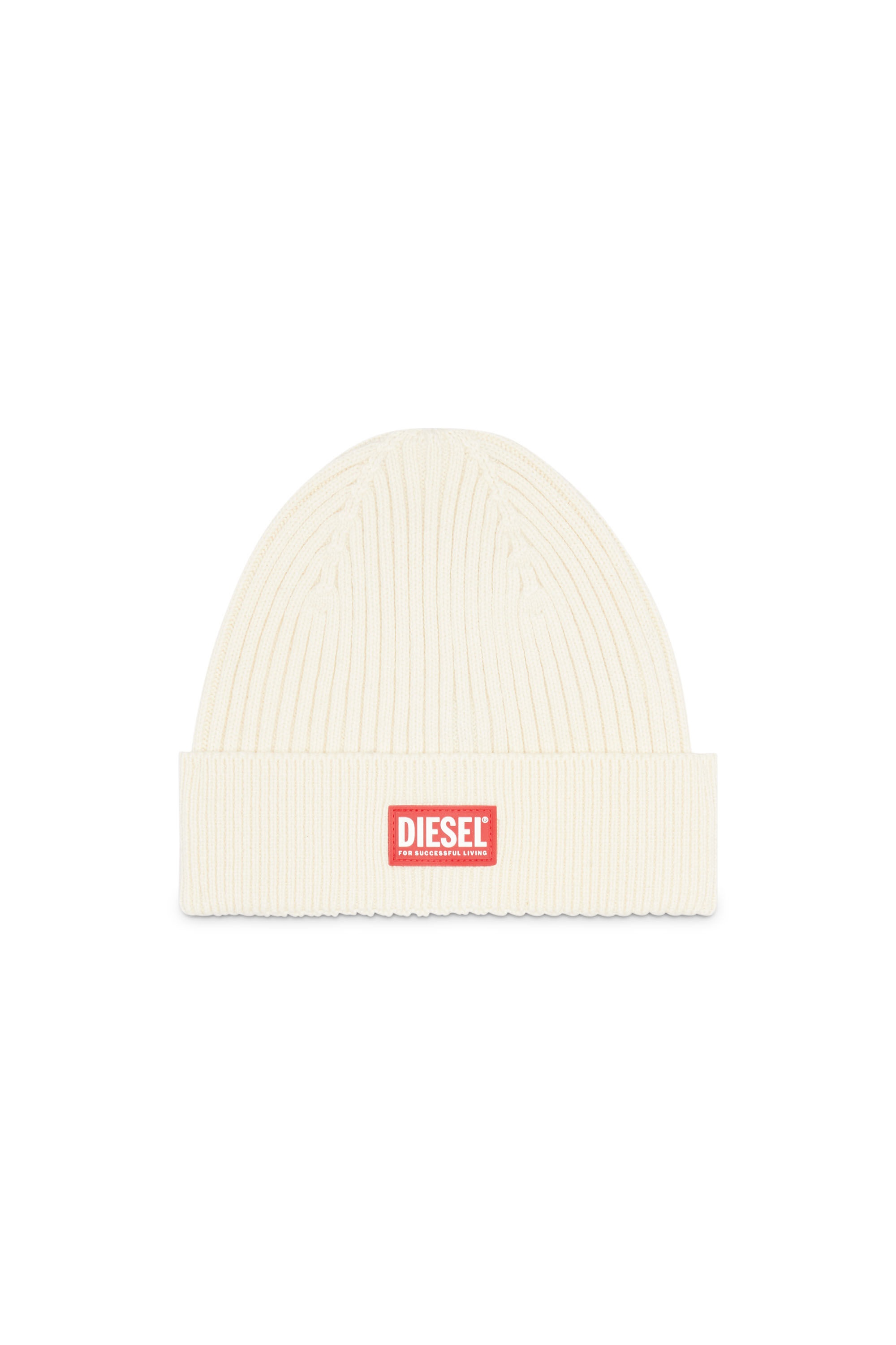 PRODUCT ID: A040910DAOB - 55%Wool 45%Cotton Wool-blend beanie with a ribbed texture and turn-up hem. Detailed on the front with a red rubber logo patch.