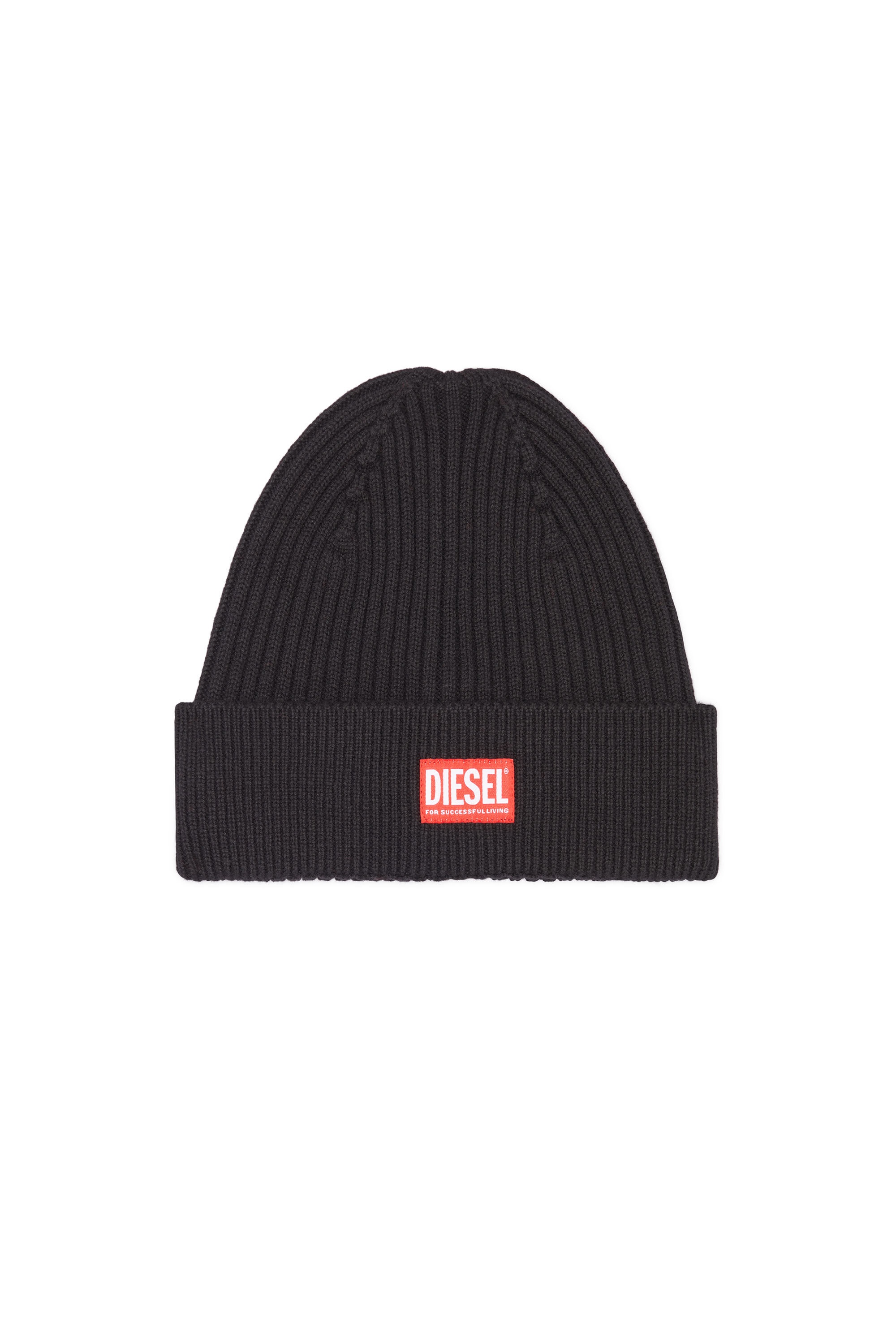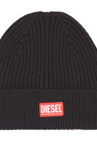 PRODUCT ID: A095040DAOB - 55%Wool 45%Cotton - Regular fit - Unisex This unisex ribbed beanie is knitted from a soft wool and cotton blend. Detailed with a 'Diesel For Successful Living' patch on the turn-up.