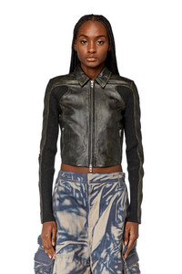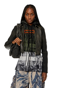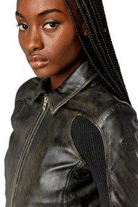Model is wearing an IT size 40 and is 175 cm / 5'7'' Fits true to size, take your normal size. This women's cropped leather jacket is supple, lightweight and treated with a wax coating to achieve a nuanced brown marbled effect. Lined for comfort, it has a pointed collar and flexible ribbed-knit panels along the sleeves. Note the signature D logo zip pulls.