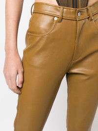 leather-effect straight-leg trousers sand brown stretch-design leather effect straight leg mid-rise front button and zip fastening classic five pockets Imported Composition Lining: Polyester 93%, Spandex/Elastane 7% Outer: Polyurethane 100% SIZE & FIT Model measurements Height 5 ft 11 in(1.8 m) Bust/Chest 31.49 in(80 cm) Hips 36.41 in(92.5 cm) Waist 25.59 in(65 cm) FittingInformation This piece fits true to size. We recommend you get your regular size Cut for a slim fit Made with a mid-weight fabric Washing instructions Hand Wash