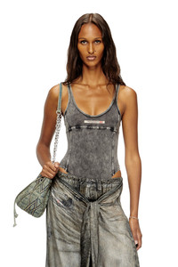 Product Description Women's tank bodysuit in denim-effect stretch jersey, featuring a marbled effect and the iconic Diesel Industry logo. ID: A191920SHAN Size & Fit Model is wearing a size S and is 175 cm / 5'7'' Check the size chart to choose the correct size. Materials & Details Composition: 95%Cotton 5%Elastane-Spandex