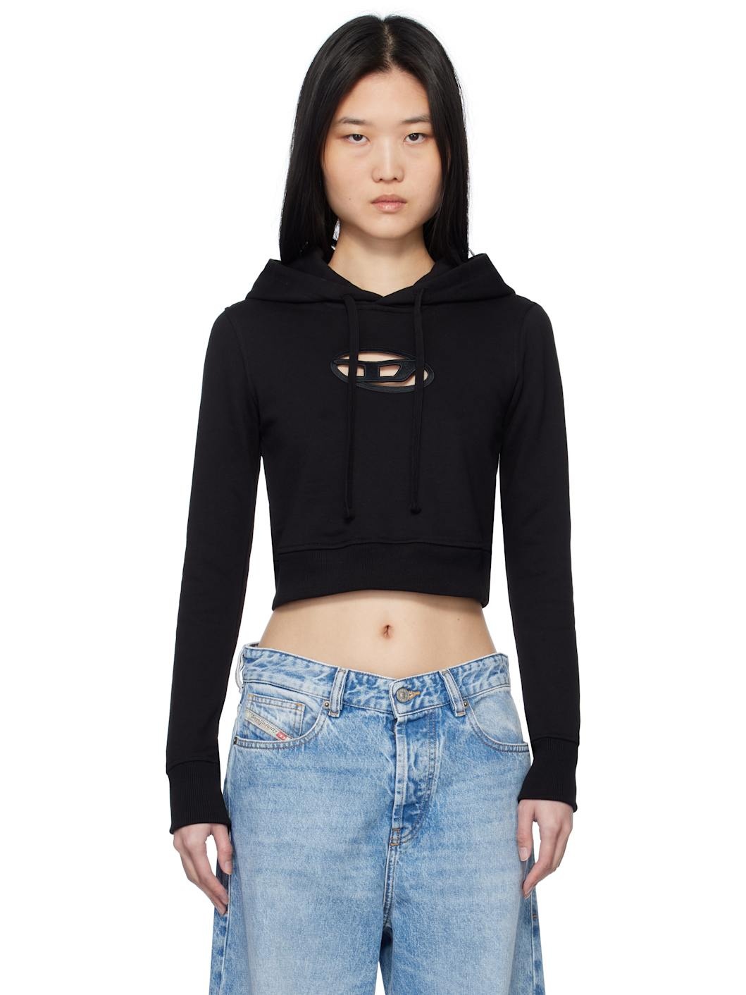 Cotton-blend French terry hoodie. · Drawstring at hood · Cutouts and logo hardware at chest · Rib-knit at cropped hem and cuffs Supplier color: Black
