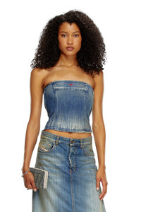 Product Description This denim top is designed with a structured, strapless silhouette that's detailed with a red embroidered D on the front. This medium blue wash is made from fix denim in partially recycled cotton. The dirt-inspired aesthetic is a contemporary take on the archival 796 wash, created through a meticulous artisanal process: the fabric is washed out and treated with a bleach effect, then manually sprayed and brushed for a distinctive streaky finish. Hand-dusted colour pigments complete the look. ID: A1277409I97 Size & Fit Model is wearing a size S and is 175 cm / 5'7'' Check the size chart to choose the correct size. Materials & Details Composition: 100%Cotton Side zip closure