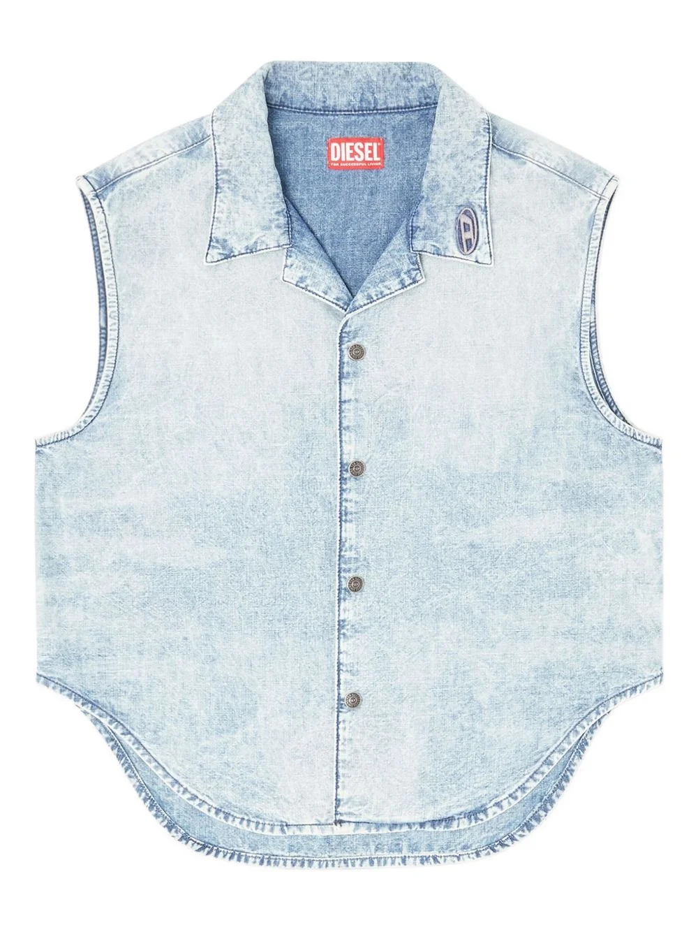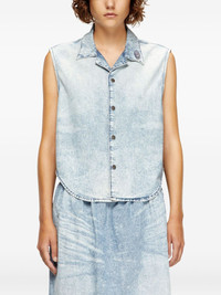logo-embroidered denim vest Highlights - Light blue - Button fastening - Sleeveless - Curved hem Made in Italy Composition Cotton 100%