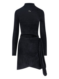 high-neck cut-out dress Highlights - Black - High neck - Cut-out detail - Long sleeves - Draped skirt - Asymmetric hem Imported Composition Polyamide 55%, Viscose 45% Washing instructions Read Manufacturer Guidelines
