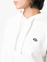 logo-patch drawstring hoodie white cotton logo patch at the chest slouchy drawstring hood long sleeves ribbed hem Imported Composition Cotton 100% SIZE & FIT Model measurements Height 5 ft 10 in(1.78 m) Bust/Chest 33.07 in(84 cm) Hips 35.82 in(91 cm) Waist 25.98 in(66 cm) FittingInformation This piece fits true to size. We recommend you get your regular size Cut for a relaxed fit Made with a mid-weight fabric Washing instructions Machine Wash