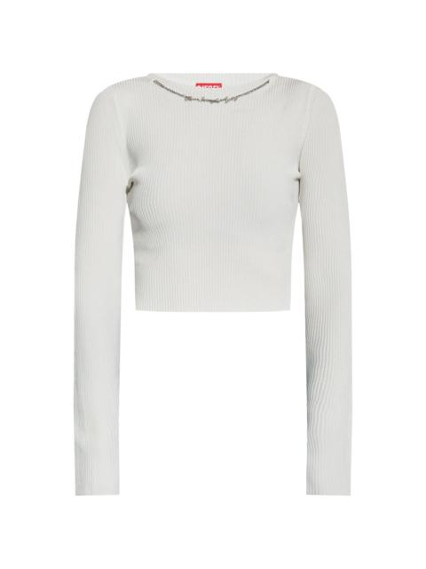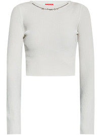 M-ALEA top Highlights - White - Ribbed knit - Long sleeves - Cropped - Crew neck Imported Composition Viscose 75%, Polyamide 25% Washing instructions Read Manufacturer Guidelines