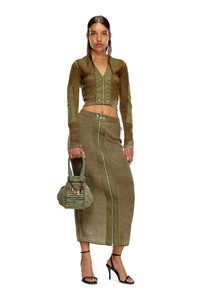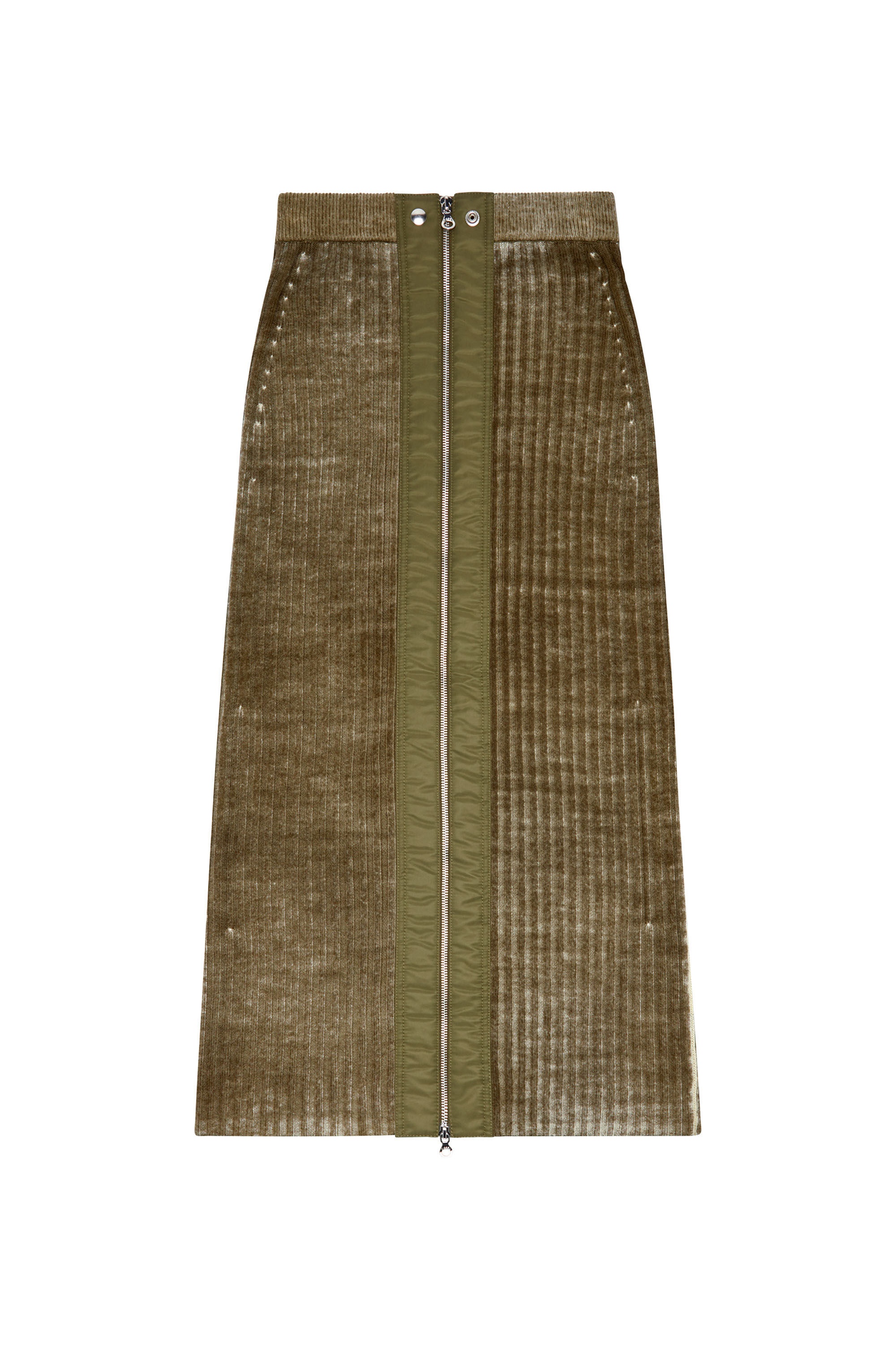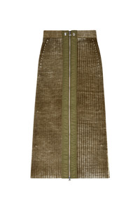 Product Description Cut to a midi length, this women's wool skirt is made from close-fitting ribbed knit that's specially treated to obtain an uneven colour finish. It's crafted using responsibly sourced fibres and finished with utilitarian nylon trims along the full-length zip – adjust it to create a custom slit. ID: A148600JHAY Size & Fit Model is wearing a size S and is 175 cm / 5'7'' Check the size chart to choose the correct size. Materials & Details Composition: 100%Wool, Application 100%Polyamide-Nylon Slim fit Two-way zip along front