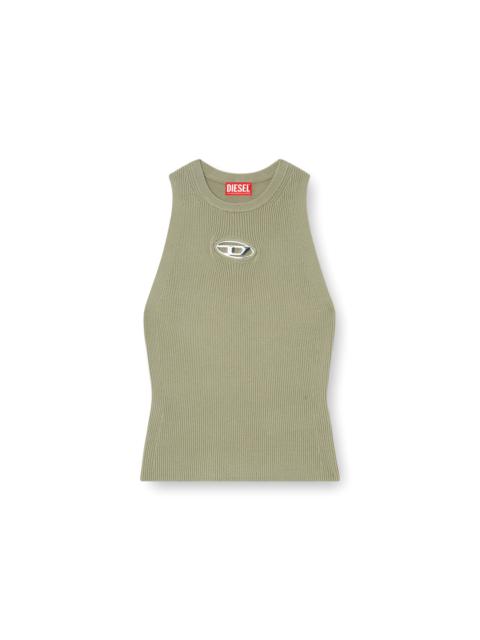 Product Description This women’s tank top is knitted from a soft blend containing 83% viscose from responsibly managed forests. The plated ribbing features contrasting textures on the front and back. The small metal Oval D plaque nestled in the chest cut-out shows off a hint of skin. ID: A174500DLAX Size & Fit Model is wearing a size S and is 175 cm / 5'7'' Check the size chart to choose the correct size. Materials & Details Composition: 83%Viscose-Rayon 17%Polyester