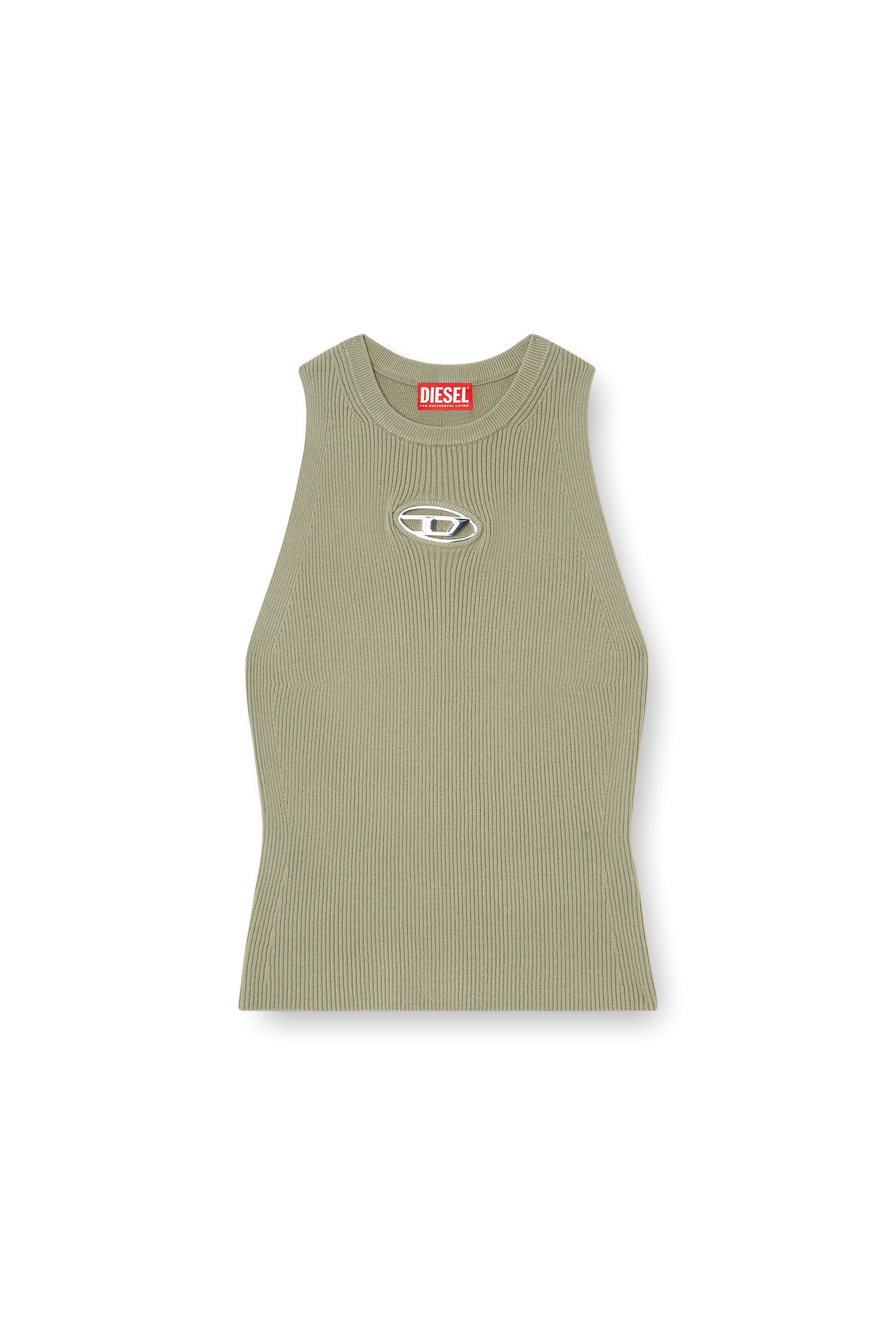 Product Description This women’s tank top is knitted from a soft blend containing 83% viscose from responsibly managed forests. The plated ribbing features contrasting textures on the front and back. The small metal Oval D plaque nestled in the chest cut-out shows off a hint of skin. ID: A174500DLAX Size & Fit Model is wearing a size S and is 175 cm / 5'7'' Check the size chart to choose the correct size. Materials & Details Composition: 83%Viscose-Rayon 17%Polyester