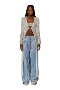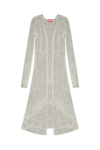 Model is wearing a size S and is 175 cm / 5'7'' Fits true to size, take your normal size. Knitted from soft and fuzzy viscose chenille, this women’s cardigan feels sumptuously plush and has a shimmery finish. The slim, longline silhouette brushes the ankles and features a single fastening in the form of a metal Oval D logo plaque.