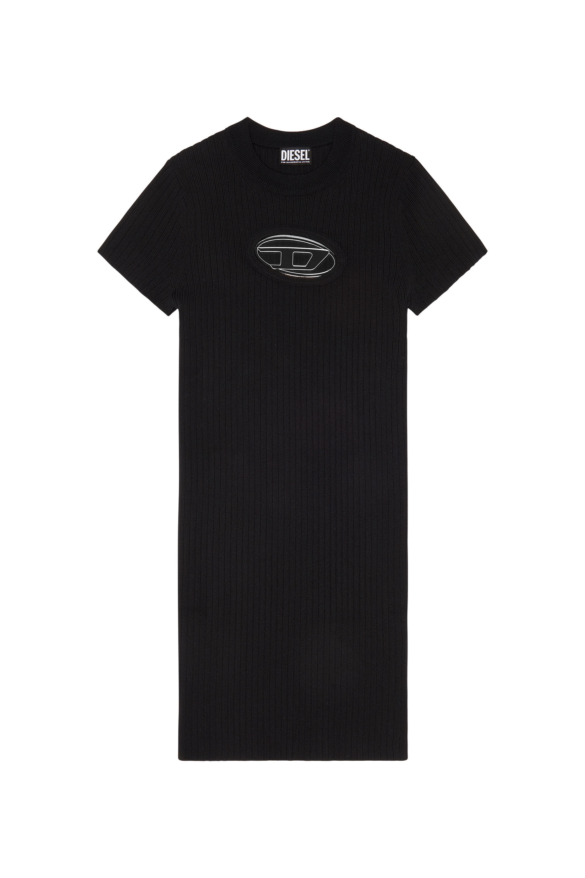 PRODUCT ID: A060620JEAQ - 100%Polyamide-Nylon Model is wearing a size S and is 175 cm / 5'7'' Fits true to size, take your normal size. This midi dress flaunts an enamelled metal D logo plaque, creating a peek-a-boo effect at the chest. Rib-knitted from technical yarn for a slim figure-hugging fit.