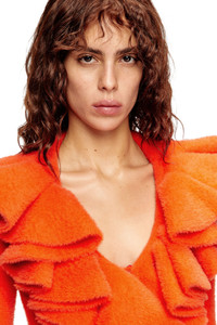 Product Description Sculptural volume and exuberance define this women's cropped cardigan from the FW25 Runway Show collection. Crafted from the softest plush knit, it has a deep neckline and a statement collar exploded into a three-dimensional mega ruffle. The acid-bright hue is just as extravagant. ID: A214480CECX Size & Fit Model is wearing a size S and is 175 cm / 5'7'' Check the size chart to choose the correct size. Materials & Details Composition: 100%Polyamide-Nylon, Application 93%Polyamide-Nylon 7%Elastane-Spandex Fall Winter 2025 Runway Show Regular, cropped fit