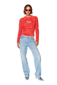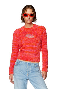 Model is wearing a size S and is 175 cm / 5'7'' Fits true to size, take your normal size. This women's jumper is spun from a fluffy recycled cotton-nylon blend with blurry stripes. Styled with a high neck, its regular-fit profile features an oval cut-out on the chest with a metal Oval D plaque.