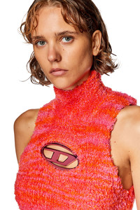 Model is wearing a size S and is 175 cm / 5'7'' Fits true to size, take your normal size. This striped mini dress is knitted from a recycled cotton-nylon blend with a fluffy texture. Its high-neck sleeveless silhouette is cut to a regular fit, flaunting an oval cut-out on the chest with a metal Oval D plaque.