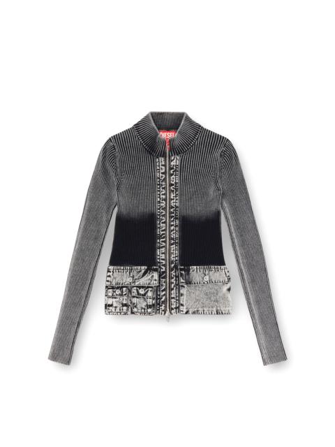 Product Description This women's black cardigan plays with saturation and fade. A utility-inflected mock-neck style, it’s rib-knitted from cotton and trimmed with marbled-effect denim – the fabric traces the zip and forms the multi-sized cargo pockets. The red lacquered D logo pull adds a signature touch. ID: A168950QMAN Size & Fit Model is wearing a size S and is 175 cm / 5'7'' Check the size chart to choose the correct size. Materials & Details Composition: 100%Cotton Mock neck Cargo pockets with snap-button flaps Two-way zip closure with D logo pulls