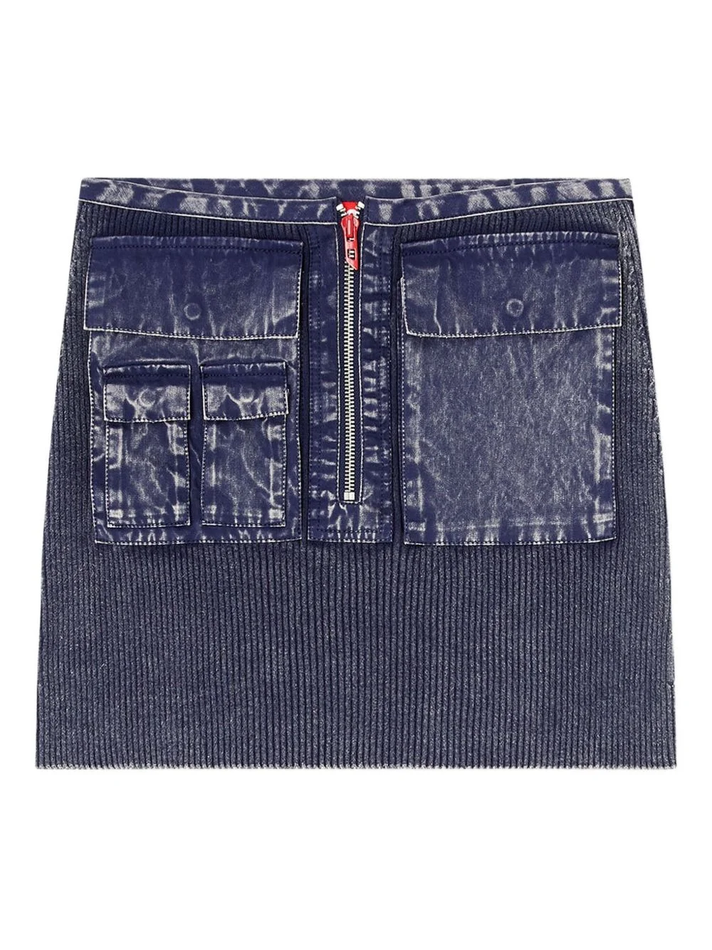 M-Meryn zip-front pocket mini skirt Highlights - Dark-blue - Ribbed texture - Zip fastening - Multiple pockets - Wash effect - Cotton Imported Composition Organic Cotton 100% Washing instructions Read Manufacturer Guidelines