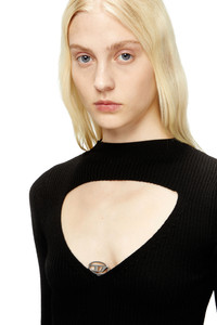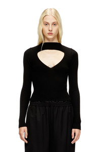 Product Description This women's ribbed-knit top features a mock neck and a bold V-shaped chest cut-out with Oval D hardware at the base – the embellishment is minimal yet strategic. It's spun from 100% responsibly sourced wool in a close-fitting silhouette. ID: A189040PLBF Size & Fit Model is wearing a size S and is 175 cm / 5'7'' Check the size chart to choose the correct size. Materials & Details Composition: 100%Wool