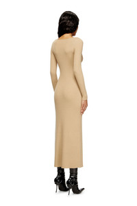 Product Description Midi wool dress with long sleeves, featuring a regular fit and a wrap-around silhouette. Crafted with 2x2 ribbing across the entire surface, it is distinguished by a triangle intarsia at the neckline. The Oval D logo is located at the lower corner of the cut-out, adding a distinctive element. ID: A189050PLBF Size & Fit Model is wearing a size S and is 175 cm / 5'7'' Check the size chart to choose the correct size. Materials & Details Composition: 100%Wool Regular fit Triangular intarsia Oval D