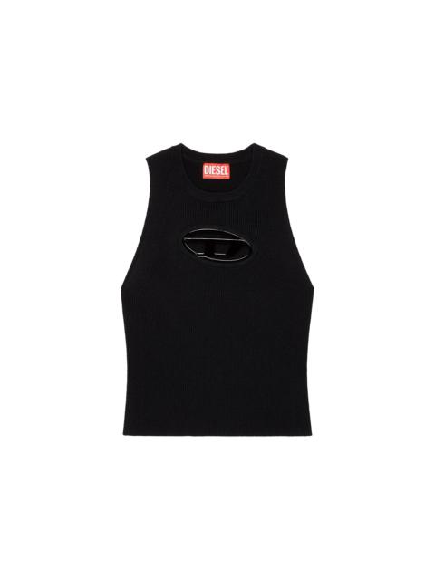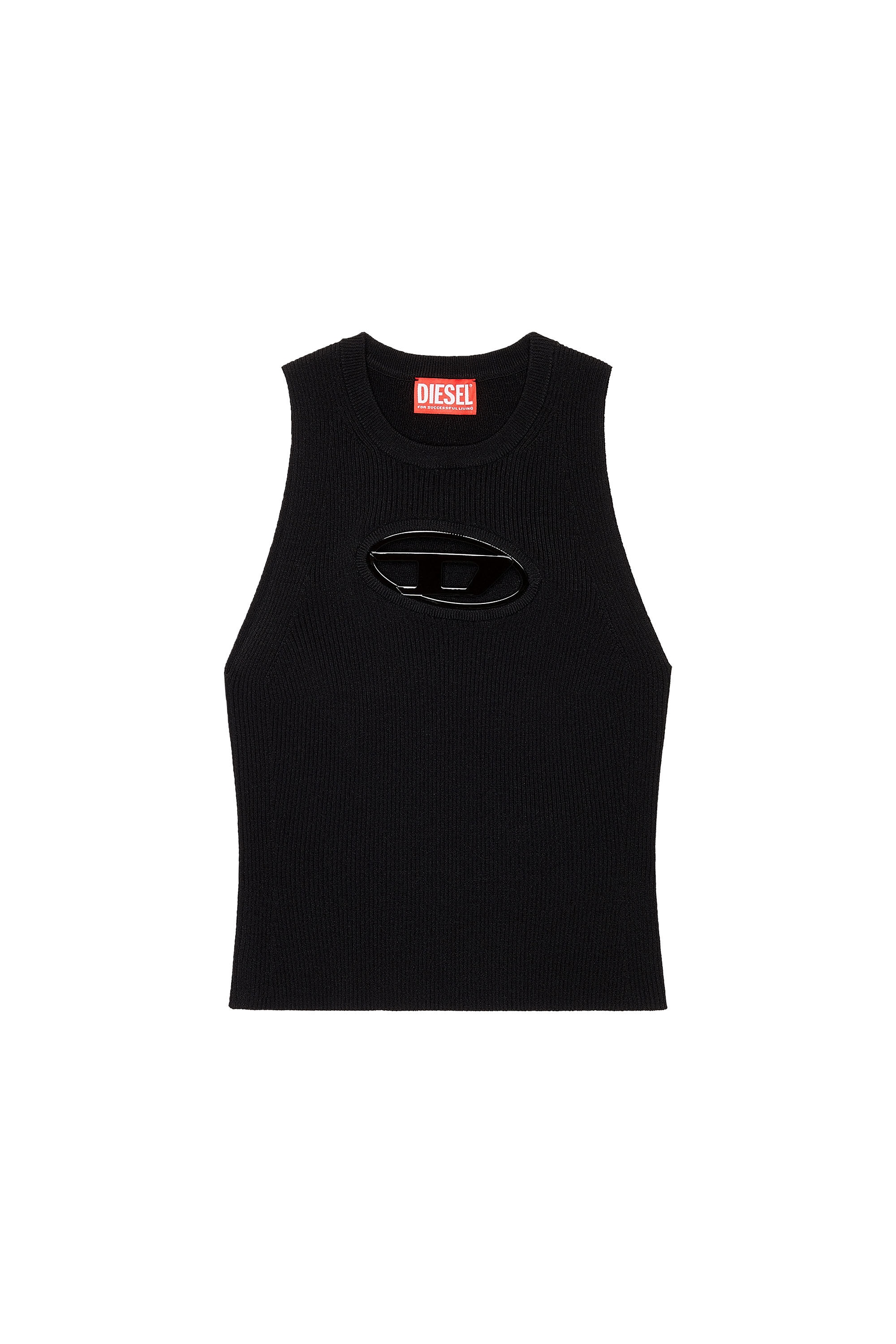 Product Description This women's tank top has a logo-plaque embellished cut-out that shows a glimpse of decolletage. It's made from soft and flexible two-tone ribbed knit in a body-hugging fit. ID: A096210DLAX Size & Fit Model is wearing a size S and is 175 cm / 5'7'' Check the size chart to choose the correct size. Materials & Details Composition: 83%Viscose-Rayon 17%Polyester Slim fit