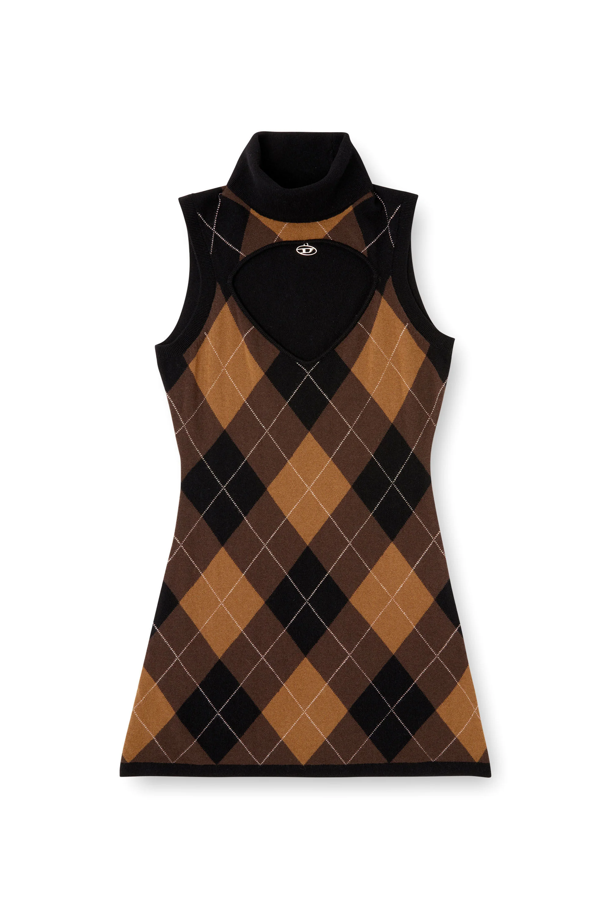 Product Description Sleeveless wool dress with front Argyle design and solid color on the back. It features a mock neck and a triangular inlay on the chest, highlighted by a pendant with the Oval D logo. The fit is regular. ID: A196950JLBB Size & Fit Model is wearing a size S and is 175 cm / 5'7'' Check the size chart to choose the correct size. Materials & Details Composition: 100%Wool Regular Fit Front Intarsia Mock Neck Oval D Logo