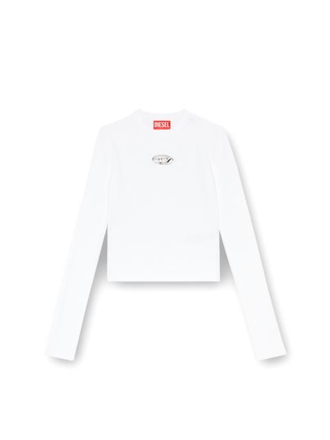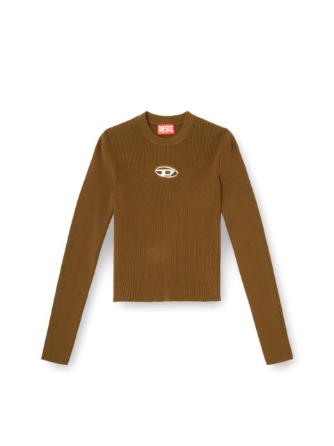 Product Description Women’s top in soft ribbed knit, spun from a blend containing viscose from responsibly managed forests. Designed for a close fit, this style has a crew neck and long sleeves. The metal Oval D plaque nestled in the chest cut-out adds a twist to a minimalist silhouette. ID: A153280DLAX Size & Fit Model is wearing a size S and is 175 cm / 5'7'' Check the size chart to choose the correct size. Materials & Details Composition: 83%Viscose-Rayon 17%Polyester Slim fit