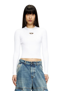Product Description Women’s top in soft ribbed knit, spun from a blend containing viscose from responsibly managed forests. Designed for a close fit, this style has a crew neck and long sleeves. The metal Oval D plaque nestled in the chest cut-out adds a twist to a minimalist silhouette. ID: A153280DLAX Size & Fit Model is wearing a size S and is 175 cm / 5'7'' Check the size chart to choose the correct size. Materials & Details Composition: 83%Viscose-Rayon 17%Polyester Slim fit