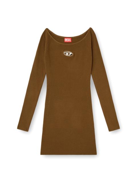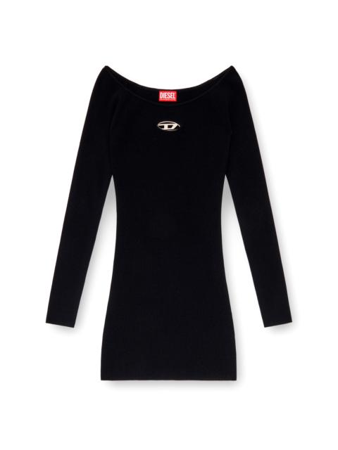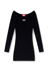 Product Description This women’s long-sleeve dress has a metal Oval D plaque nestled in the chest cut-out and a wide neckline that can be worn off-the-shoulder. It’s made from close-fitting ribbed knit containing viscose from responsibly managed forests and falls to a mini length. ID: A141880DLAX Size & Fit Model is wearing a size S and is 175 cm / 5'7'' Check the size chart to choose the correct size. Materials & Details Composition: 83%Viscose-Rayon 17%Polyester Slim fit Unlined