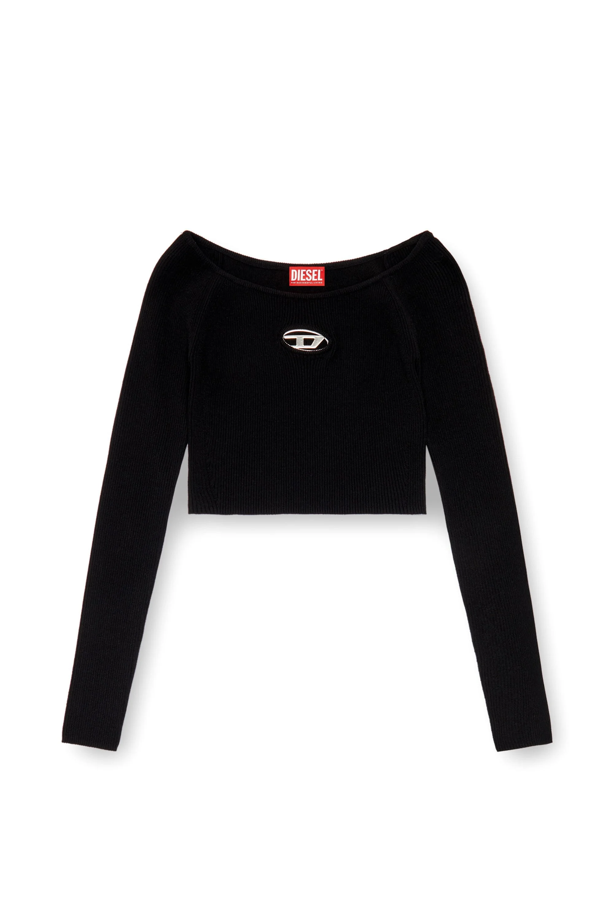 Product Description This women’s long-sleeve top is designed with a metal Oval D plaque nestled into the chest cut-out. Made from soft ribbed knit containing viscose from responsibly managed forests, it has an off-the-shoulder neckline and a slim fit. ID: A141890DLAX Size & Fit Model is wearing a size S and is 175 cm / 5'7'' Check the size chart to choose the correct size. Materials & Details Composition: 83%Viscose-Rayon 17%Polyester Slim fit