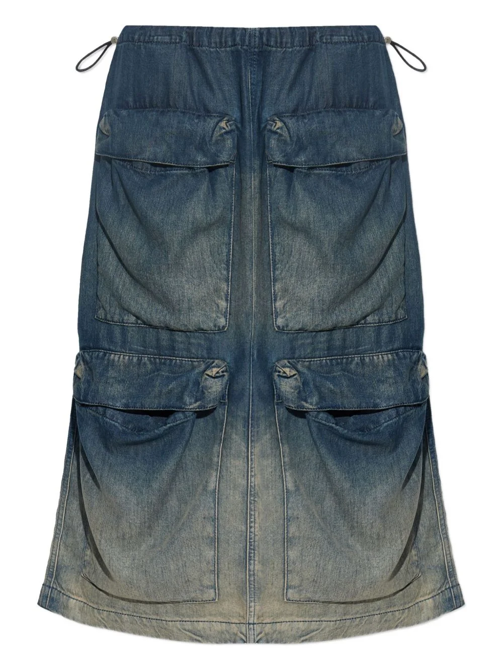 multi-pocket denim midi skirt Highlights - Blue - Multiple pockets - Drawstring waist - Faded wash - Embroidered logo Imported Composition Lyocell 100% Washing instructions Read Manufacturer Guidelines
