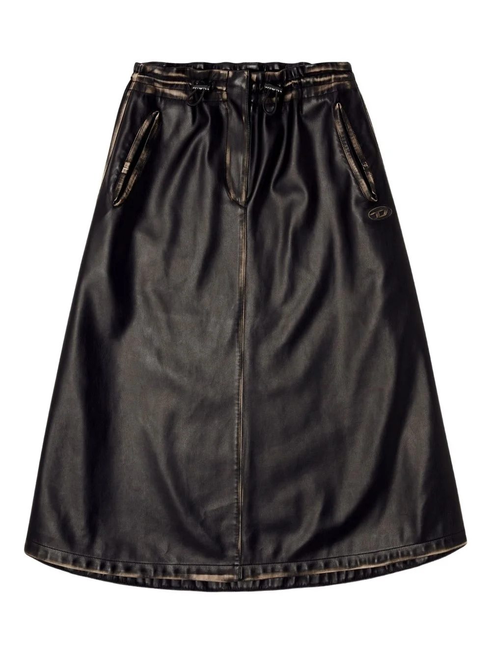 O-Blivion elasticated-waistband midi skirt Highlights - Black - Side pockets - Bungee-cord waist - Worn-fabric effect Imported Composition Polyester 100%, Polyurethane 100% Washing instructions Read Manufacturer Guidelines