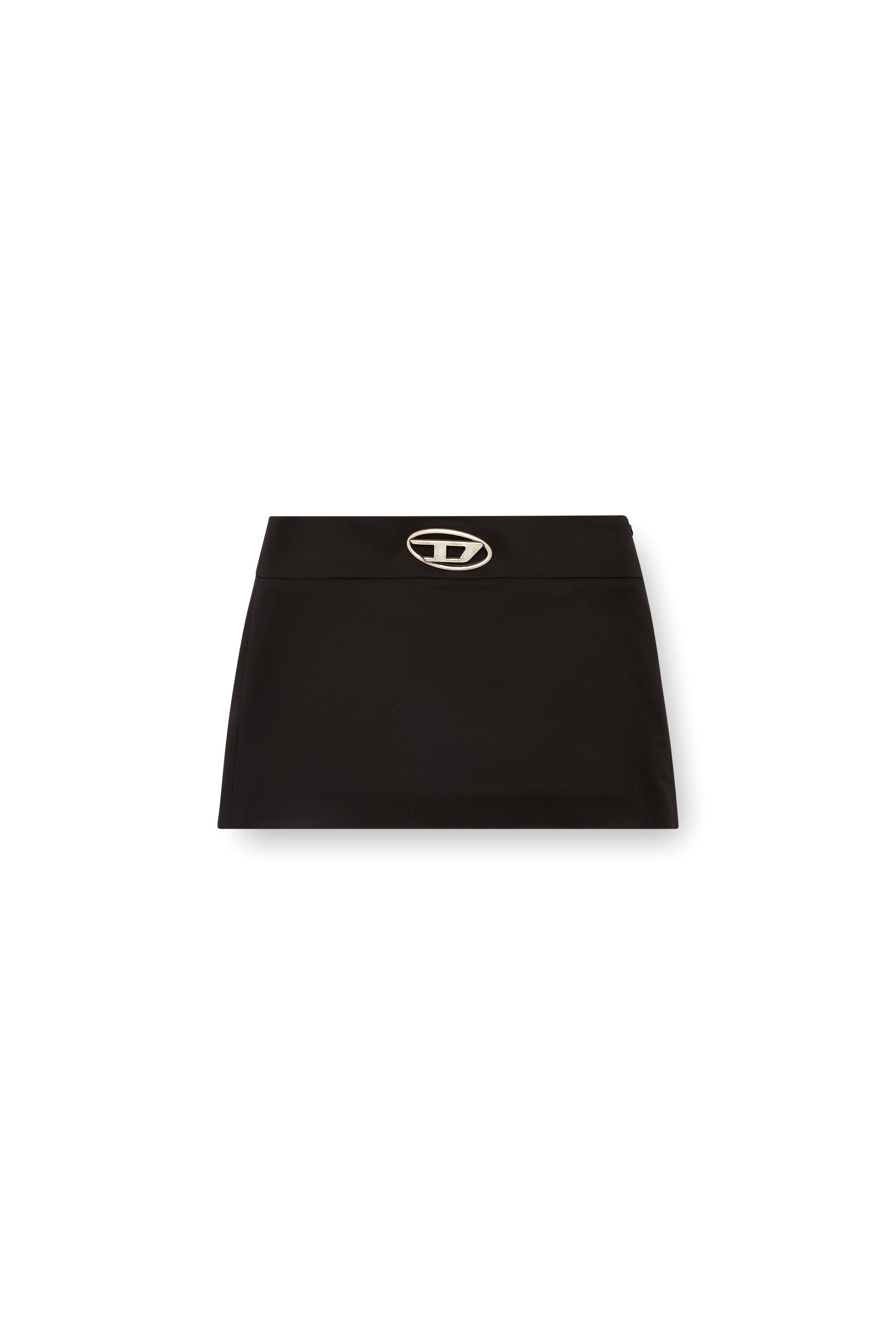 Product Description Women’s black mini skirt in stretch wool-blend twill. Cut for a close fit, this style has a wide waistband centred by a chunky metal Oval D plaque – the cut-out logo embellishment resembles a buckle on a belt. ID: A143880PHAL Size & Fit Model is wearing an IT size 40 and is 175 cm / 5'7'' Check the size chart to choose the correct size. Materials & Details Composition: 53%Polyester 43%Wool 4%Elastane-Spandex Slim fit Invisible side zip