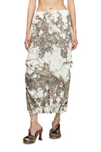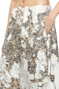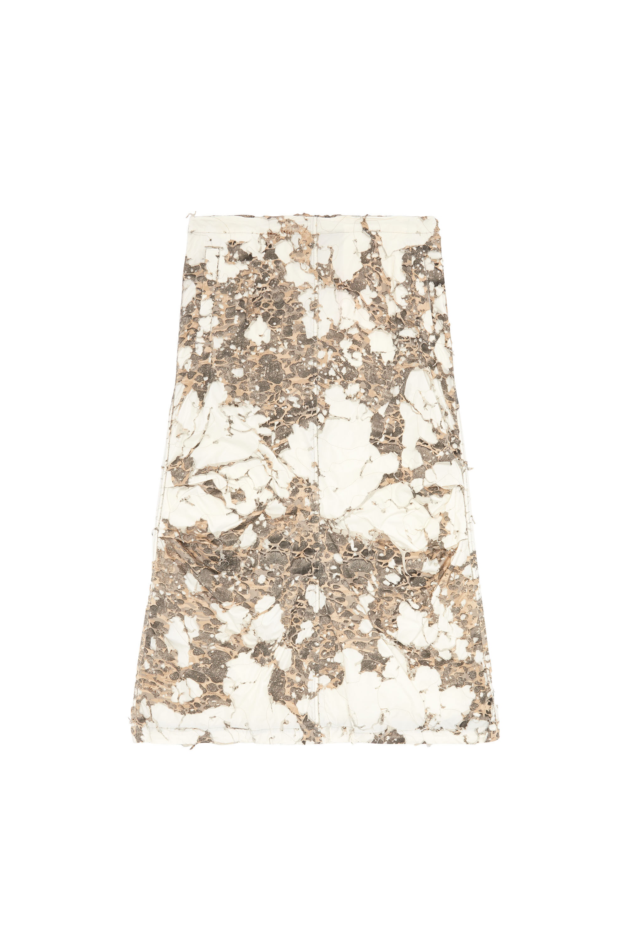 Model is wearing an IT size 40 and is 175 cm / 5'7'' Fits true to size, take your normal size. This women's maxi skirt is an exclusive SS24 Runway Show piece with a distinct utilitarian undercurrent. It's made from white nylon and burn-out camouflage jersey, quilted together with a subtle camo pattern – the result is a tattered outer layer that resembles army netting. Drawstrings at the waist and hem adjust the fit.