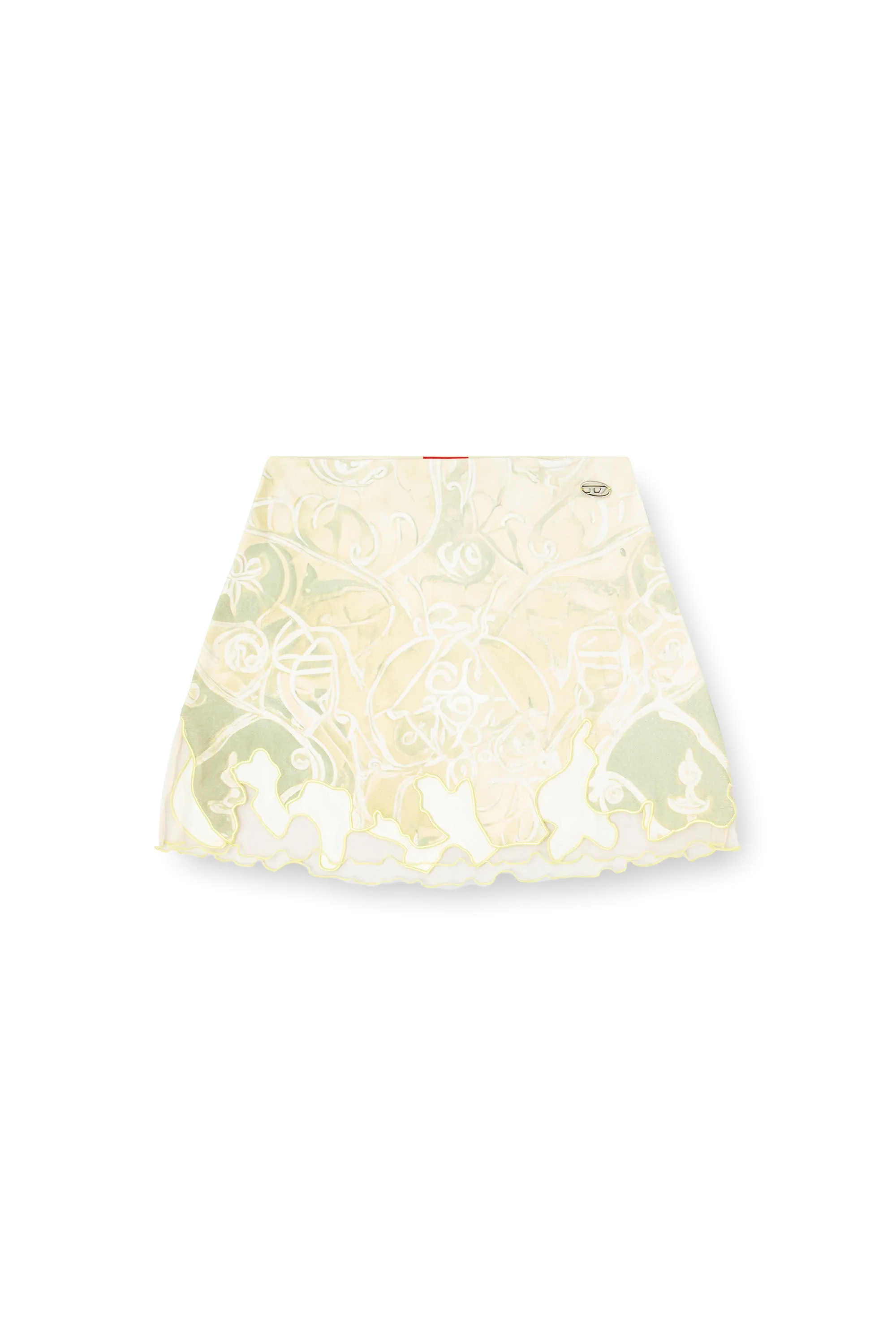 Product Description Cut from recycled nylon, this fluid mini skirt features a wallpaper-esque print that takes cues from Heraldic artwork. An asymmetrical tulle insert creates a doodle-effect hem edged with cord embroidery. A metal Oval D hallmarks the look. ID: A184170BJBT Size & Fit Model is wearing a size S and is 175 cm / 5'7'' Check the size chart to choose the correct size. Materials & Details Composition: 77%Polyamide-Nylon 23%Elastane-Spandex, Contrast 100%Polyamide-Nylon Slim fit Elasticated waist