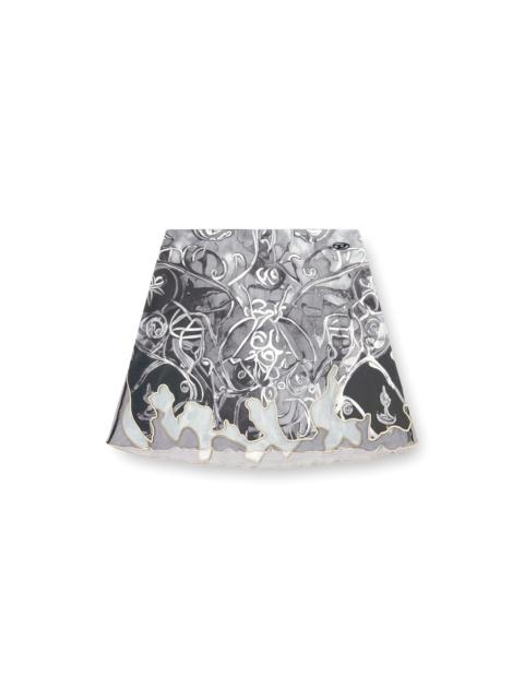 Product Description Cut from recycled nylon, this fluid mini skirt features a wallpaper-esque print that takes cues from Heraldic artwork. An asymmetrical tulle insert creates a doodle-effect hem edged with cord embroidery. A metal Oval D hallmarks the look. ID: A184170BJBT Size & Fit Model is wearing a size S and is 175 cm / 5'7'' Check the size chart to choose the correct size. Materials & Details Composition: 77%Polyamide-Nylon 23%Elastane-Spandex, Contrast 100%Polyamide-Nylon Slim fit Elasticated waist