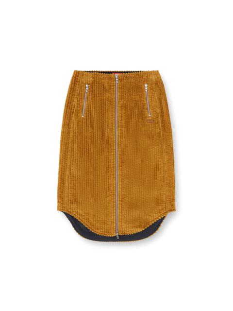 Product Description Cotton midi skirt with a used effect. It features a rounded hem and a full zip front opening, with pulls displaying the iconic Oval D logo. The two front pockets also have zip closures with logo pulls, and another Oval D tone-on-tone patch is applied on the front under the left pocket. ID: A185830EPBU Size & Fit Model is wearing an IT size 40 and is 175 cm / 5'7'' Check the size chart to choose the correct size. Materials & Details Composition: 100%Cotton Regular fit Rounded hem Front zip closure Oval D logo