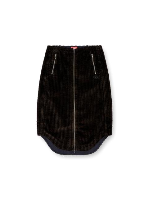Product Description Cotton midi skirt with a used effect. It features a rounded hem and a full zip front opening, with pulls displaying the iconic Oval D logo. The two front pockets also have zip closures with logo pulls, and another Oval D tone-on-tone patch is applied on the front under the left pocket. ID: A185830EPBU Size & Fit Model is wearing an IT size 40 and is 175 cm / 5'7'' Check the size chart to choose the correct size. Materials & Details Composition: 100%Cotton Regular fit Rounded hem Front zip closure Oval D logo