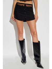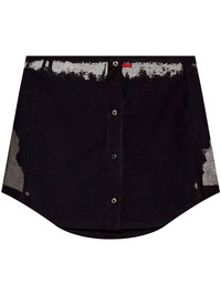 O-Malvy skirt Highlights - Black - Cotton blend - Distressed effect - Front button fastening - Curved hem - Tonal stitching Imported Composition Cotton 83%, Polyester 13%, Elastane 4% Washing instructions Read Manufacturer Guidelines